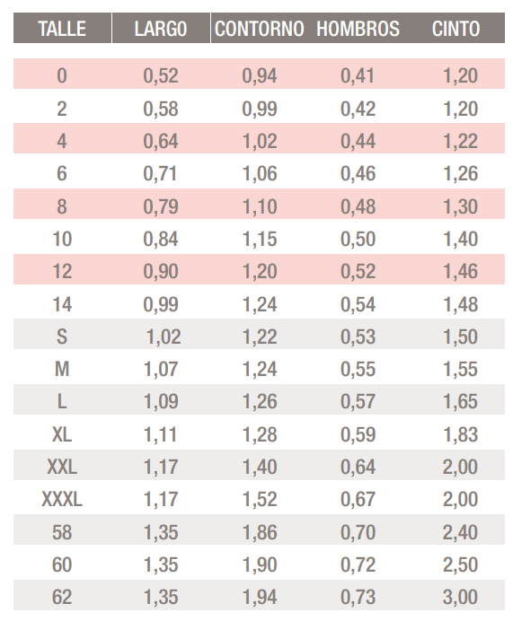 Talle: 4, 6, 8, 10, 12, 14.