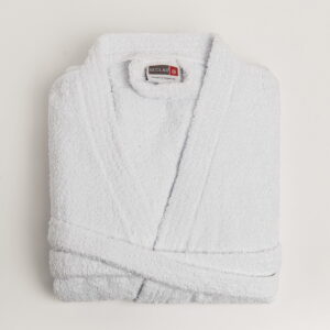 BATA DE BAÑO TONDOSADA – LUXURY VELOUR – Blanca- 100% Algodón